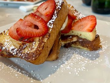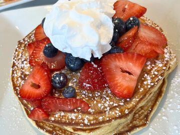 3 pancakes with butter, powder sugar, or texas toast with powder sugar