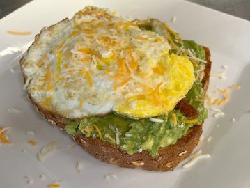 smashed avocado, roasted grape tomatoes, cheese, 1 egg any style